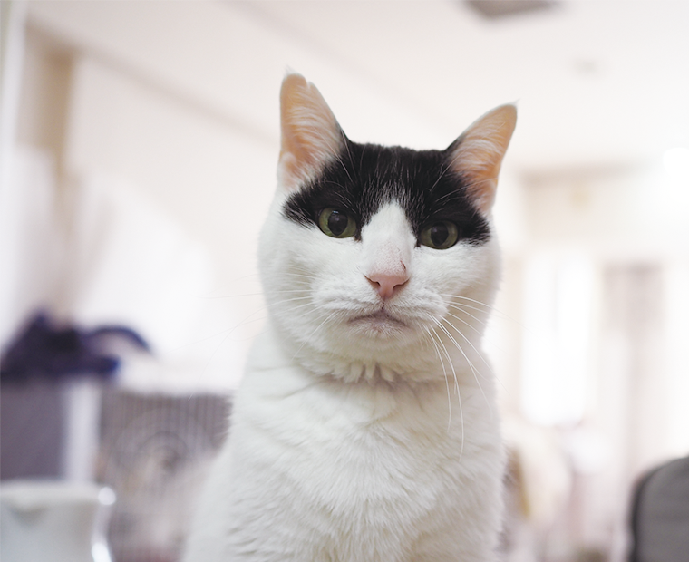 自分のことをたぶん猫とは思っていない白黒のヨネくん。長めの前髪が特徴です。うれしくなるとちょっと噛むのがタマニキズ。